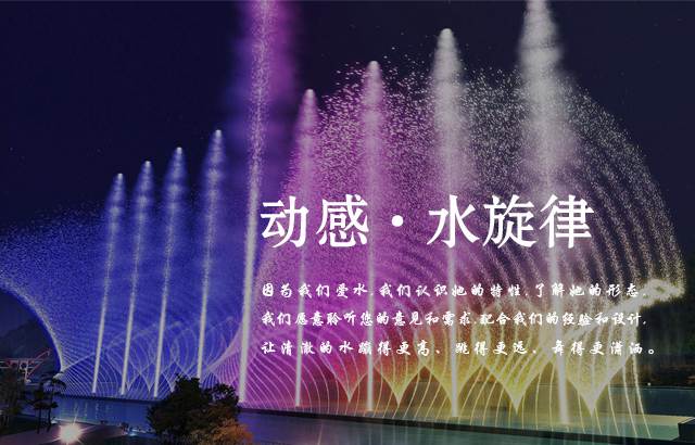 云南龍諾噴泉 — 專業打造融入地方特色的創意水景噴泉設計工程,主要從事園林景觀工程、大型水秀水景工程、昆明音樂噴泉工程、程控噴泉工程、冷霧造景、水幕電影、數碼水簾、環保工程、燈光亮化工程的設計與施工。始終堅持質量為先的工程理念,提供全方位的服務支撐,堅持做充滿藝術觀感的高品質噴泉水景。